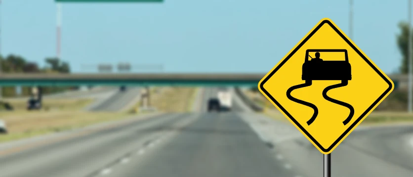 This sign warns drivers that the upcoming road is slippery, so keep your vehicle slow and drive with caution.