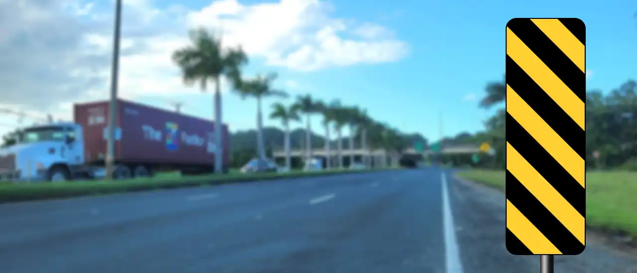 This sign is used when the roadway's edge is nearby. Drivers must keep the vehicle to the right side of the lane.