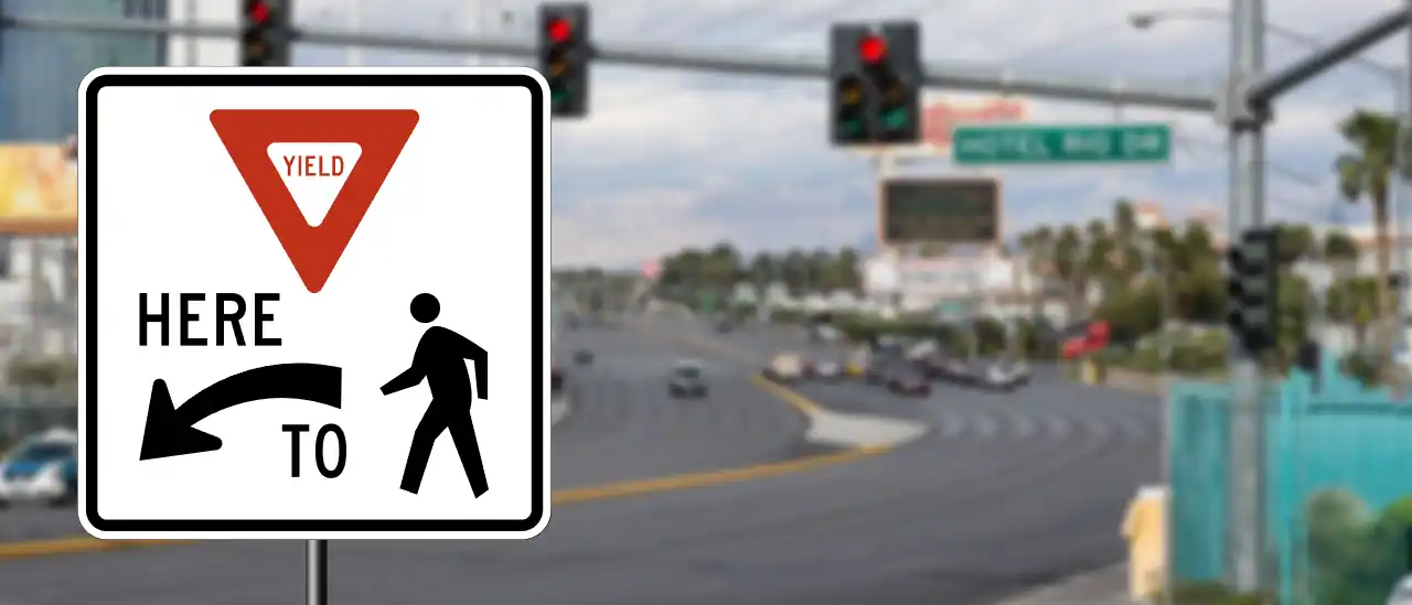 If you see a person with a white cane and a guide dog, it means that the pedestrian is visually impaired, so drivers need to stop the vehicle so that they can proceed carefully and safely.